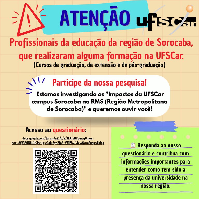 A UFSCar campus Sorocaba completara 20 anos em 2026 e estamos fazendo uma pesquisa para saber sobre os impactos que teve na educação dos 27 municípios da RMS (Região Metropolitana de Sorocaba).